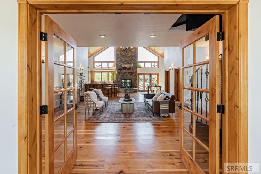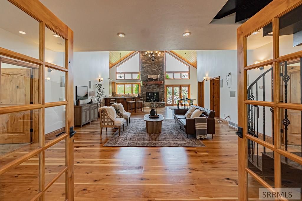Escape to the peace and beauty of Swan Valley, Idaho with this rare opportunity at 166 E Elk Path. Nestled high on the east bench, this 3-acre property offers panoramic mountain views and the quiet charm of a true getaway. Built in 2008, the home welcomes you with mature trees, a covered front porch, and portico entry. Step into a soaring great room with magnificent hickory floors, a grand stone fireplace, and picture windows that capture the valleys breathtaking scenery. The main-level primary suite features double walk-in closets, a jetted tub, steam shower, and custom tilework. A second large bedroom sits on the opposite wing. The open-concept kitchen includes granite countertops and cherry cabinetryperfect for entertaining or relaxing in comfort. Upstairs, a cozy loft connects two more spacious bedrooms. Recent mechanical updates, plus a detached 1,200 sq ft shop/garage for all your vehicles and gear. Ideal as a second home or full-time mountain retreat, just a short drive from Jackson Hole or Idaho Falls and literally minutes to one of the worlds finest fly fishing rivers in the world. An incredible opportunity to own this impressive property.