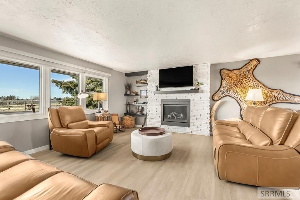 Beautifully updated country home built in 1972, set on 10.76 private acres with stunning views and exceptional privacy. Located on a private lane, this property offers peace and seclusion with no drive-by traffic. The home features 5 bedrooms and 3 bathrooms with thoughtful updates throughout, including granite countertops, large windows, main-floor laundry, and a walk-in closet. Enjoy cozy Idaho evenings with three propane fireplaces. Recent improvements include new Leaf Guard gutters on the home. Outdoor living includes a backyard deck, fire pit, and wide-open space ideal for entertaining or relaxing while taking in the views. The insulated shop offers incredible functionality, featuring approximately 2,640 sq ft on the main level with 10-foot ceilings and an additional 2,640 sq ft on the upper level with 8-foot ceilings. The shop includes gas forced-air heat, large windows, and a freight-style elevator/lift for moving boxes or equipment between levels. Additional features include a two-stall horse barn, horse corrals, chicken coop, and a single-car attached garage. A rare opportunity offering acreage, privacy, shop space, and versatilitythis is truly a must-see.